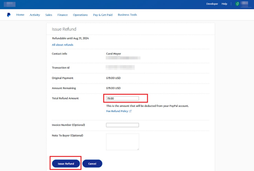 Process the Refund From your PayPal Account